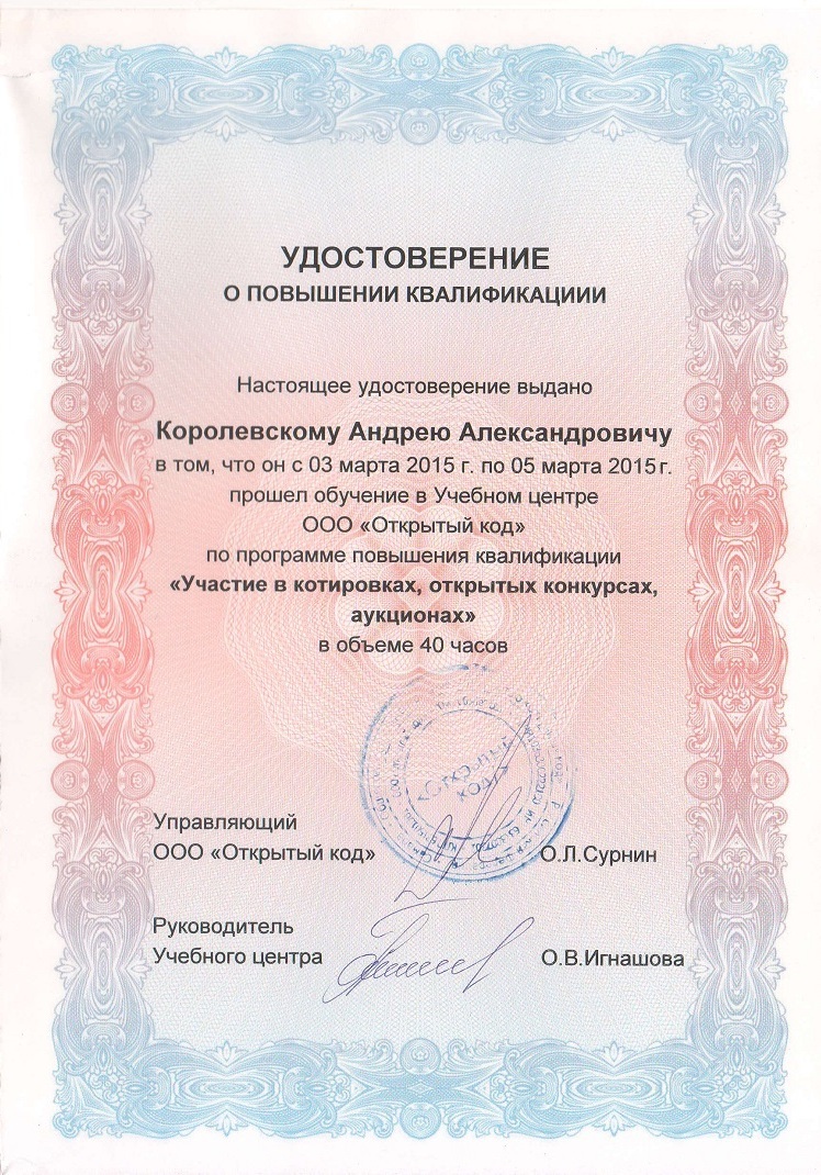 Специализированная тендерная компания «Эксперт» - профилированная компания в сфере организации и участия в конкурентных способах закупок (коммерческие, государственные и муниципальные торги). Основатель компании - ИП Королевский Андрей Александрович.